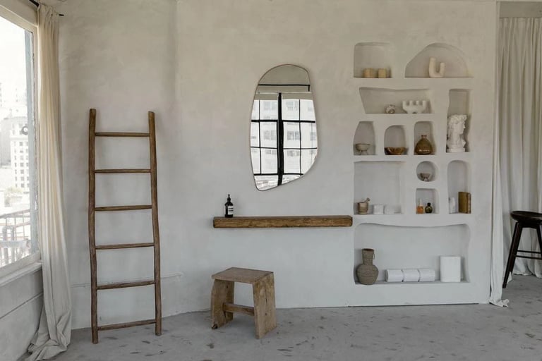 Use clay plaster in a home office or wellness room to foster calm and focus. Pair it with natural fabrics like linen, jute, or cotton for a holistic look.
